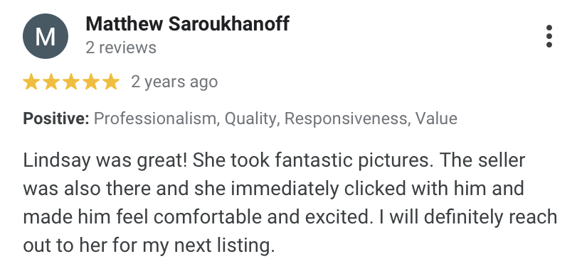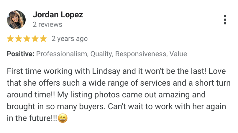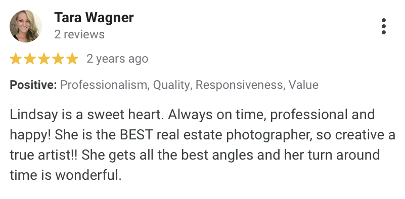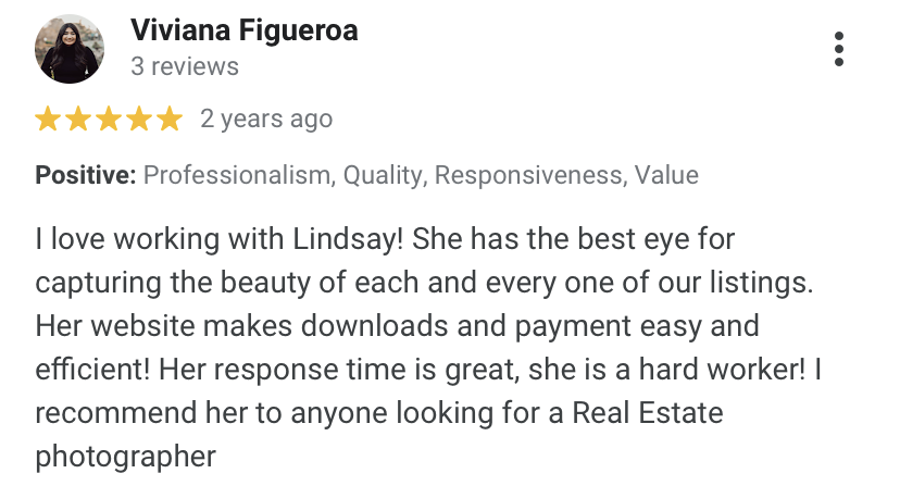 “Coming into a new career felt extremely intimidating at first, but through taking Lindsay’s course I was able to build the confidence and skills to make it happen. The course is well organized and well rounded. It gave me insight into every aspect of not only real estate photography, but also starting up and running a successful business. Lindsay has answered all of my questions and provided support throughout the entire experience, which was a huge bonus. I feel like I’ve been able to hit the ground running. Having a step-by-step guide to get started and feel confident in my abilities has been invaluable. Thank you Lindsay!”